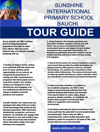 Sunshine International School is a School located in Bauchi in The Northern part of Nigeria. The Nursery school was established in 1986 with the Primary and Secondary opened in 2010.